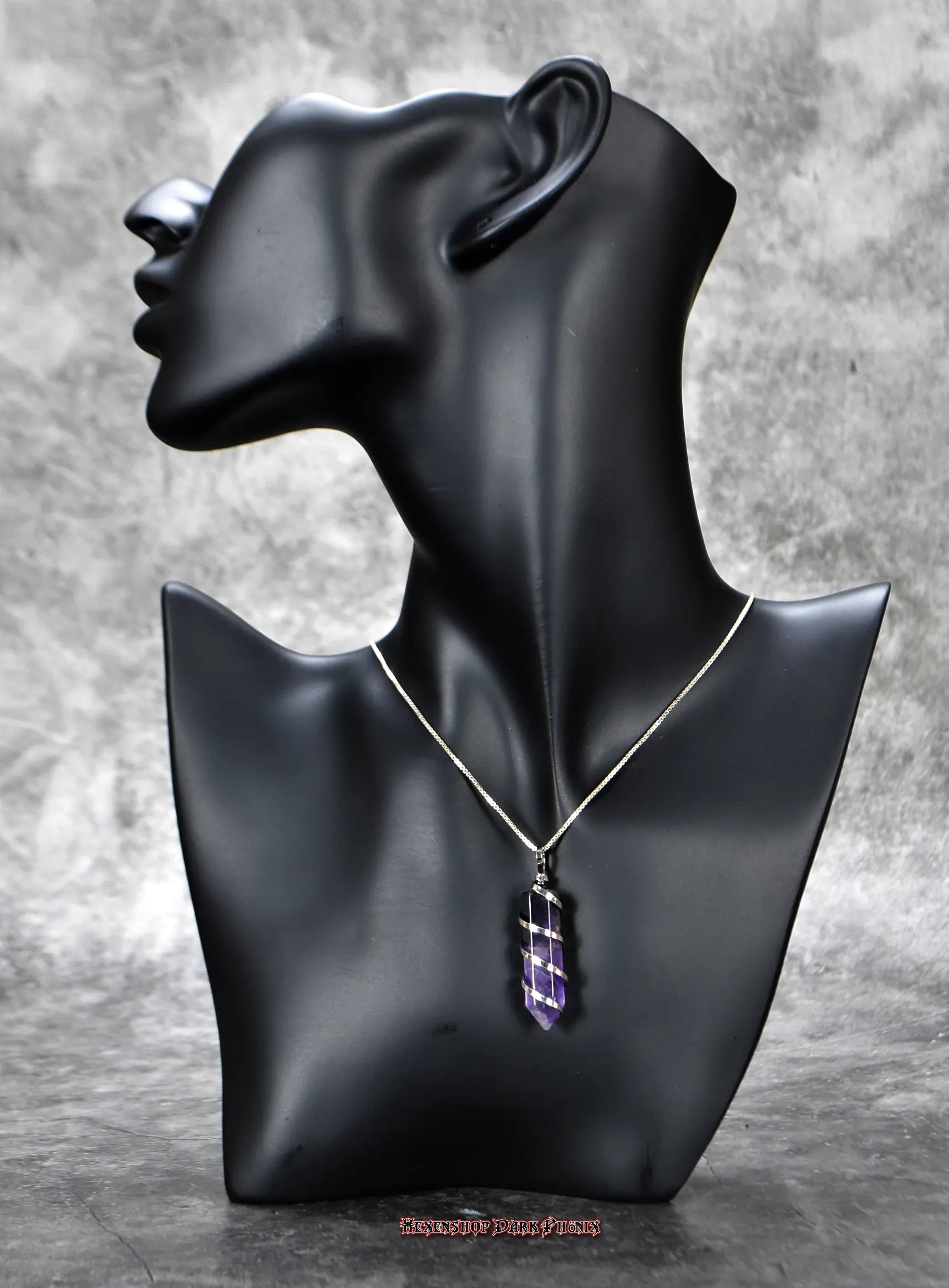 Ein feiner facettierter Amethyst Anhänger mit silberfarbener Spirale und Öse. Die Form, Größe und Farbe kann variieren. Dieser Anhänger ist Nickel, Blei und Cadmium frei. Er lagert auf einem Kraftplatz. Auch als Geschenk geeignet. Lasst Euch von der Vielfalt inspirieren, Eure eigenen starken Zauber zu kreieren. Hexenshop Dark Phönix: dark, darker, am darkesten )O(