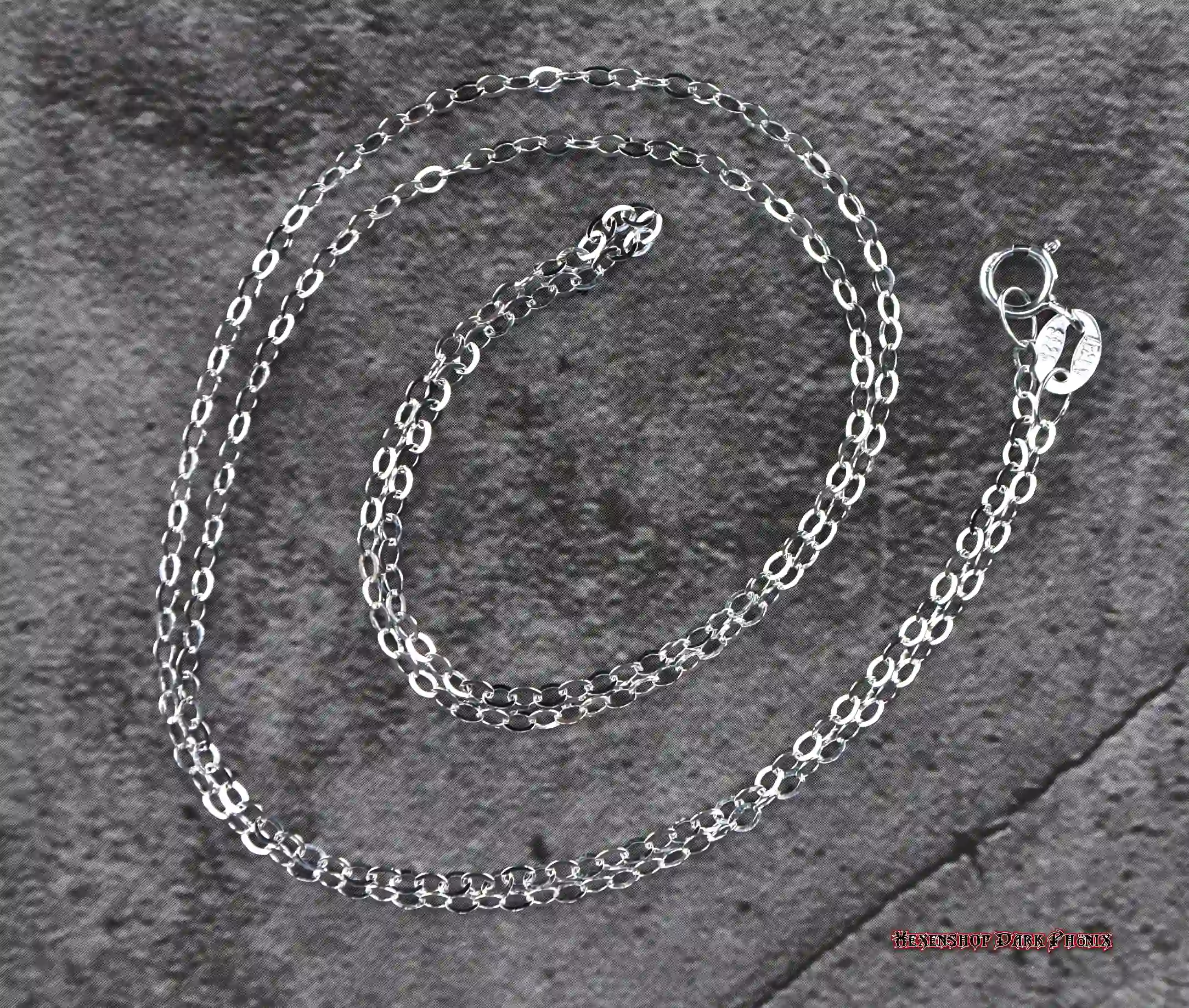 Eine filigrane Ankerkette 0,2 mm breit aus 925er Sterlingsilber. Sie hat einen hochwertigen Federring-Verschluss und ist 50 cm lang. Dieses Schmuckstück lagert auf einem Kraftplatz. Auch als Geschenk geeignet. Lasst Euch von der Vielfalt inspirieren, Eure eigenen starken Zauber zu kreieren. Hexenshop Dark Phönix: dark, darker, am darkesten )O(