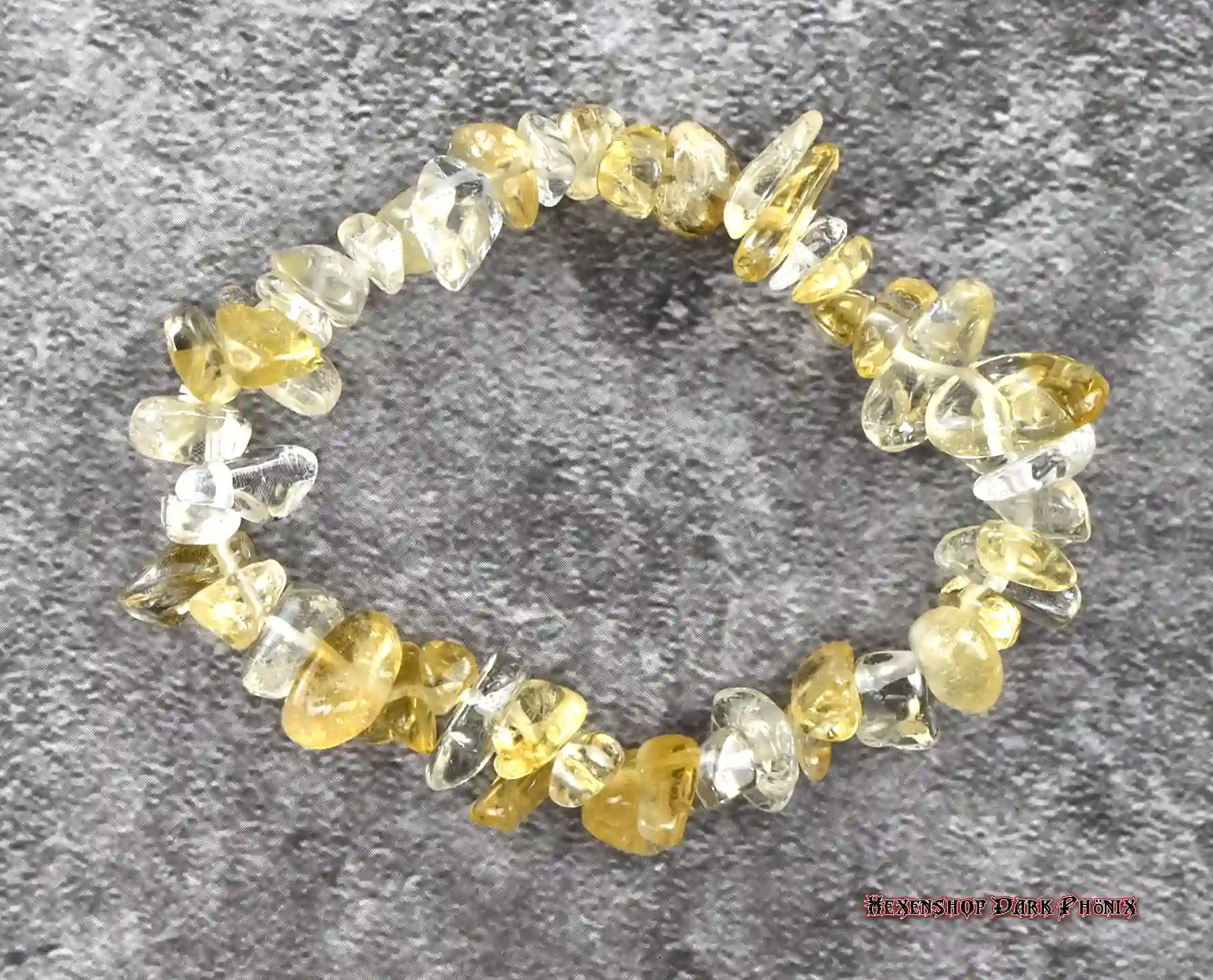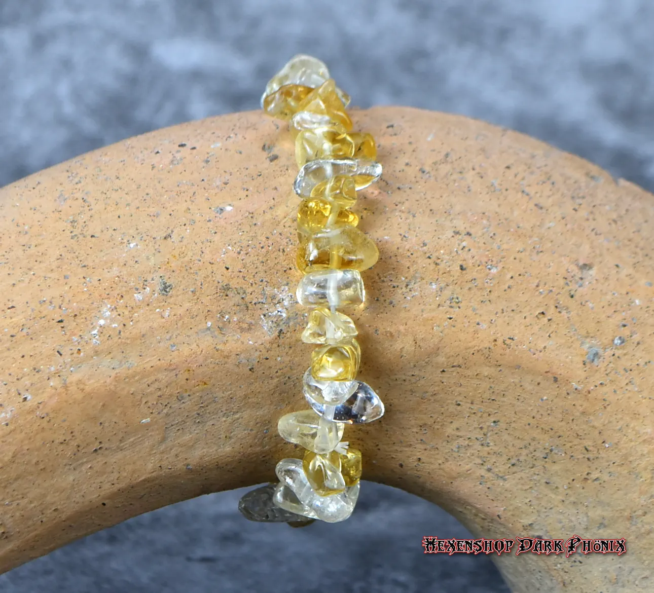 Ein kraftvolles, energetisches, elastisches Halbedelsteinsplitterarmband aus Citrin. Es lagert auf einem Kraftplatz. Auch als Geschenk geeignet. Lasst Euch von der Vielfalt inspirieren, Eure eigenen starken Zauber zu kreieren. Hexenshop Dark Phönix: dark, darker, am darkesten )O(