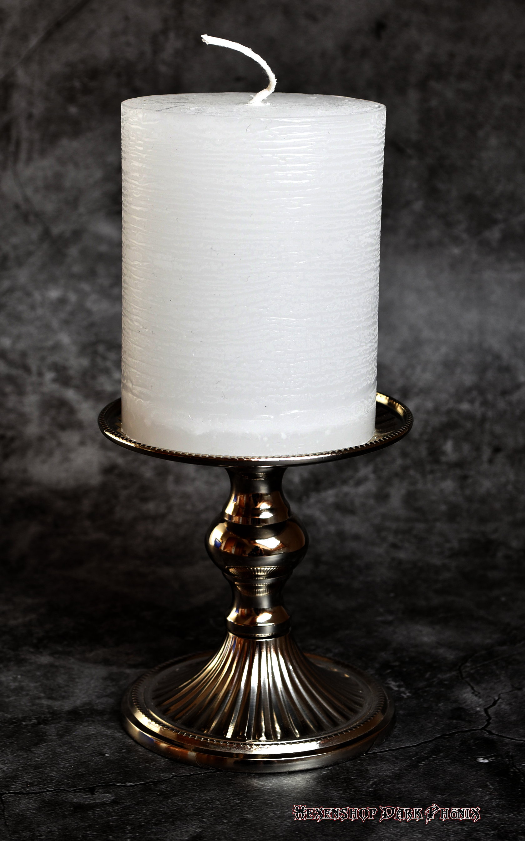 Eine handgegossene weiß durchgefärbte Rustikkerze für Euren Altar, Rituale und den Wohnbereich. Ihr Licht bringt Reinheit, Schutz, Einigkeit und Frieden. Sie steht für die Spiritualität an sich. Diese Kerze lagert auf einem Kraftplatz. Auch als Geschenk geeignet. Lasst Euch von der Vielfalt inspirieren, Eure eigenen starken Zauber zu kreieren. Hexenshop Dark Phönix: dark, darker, am darkesten )O(