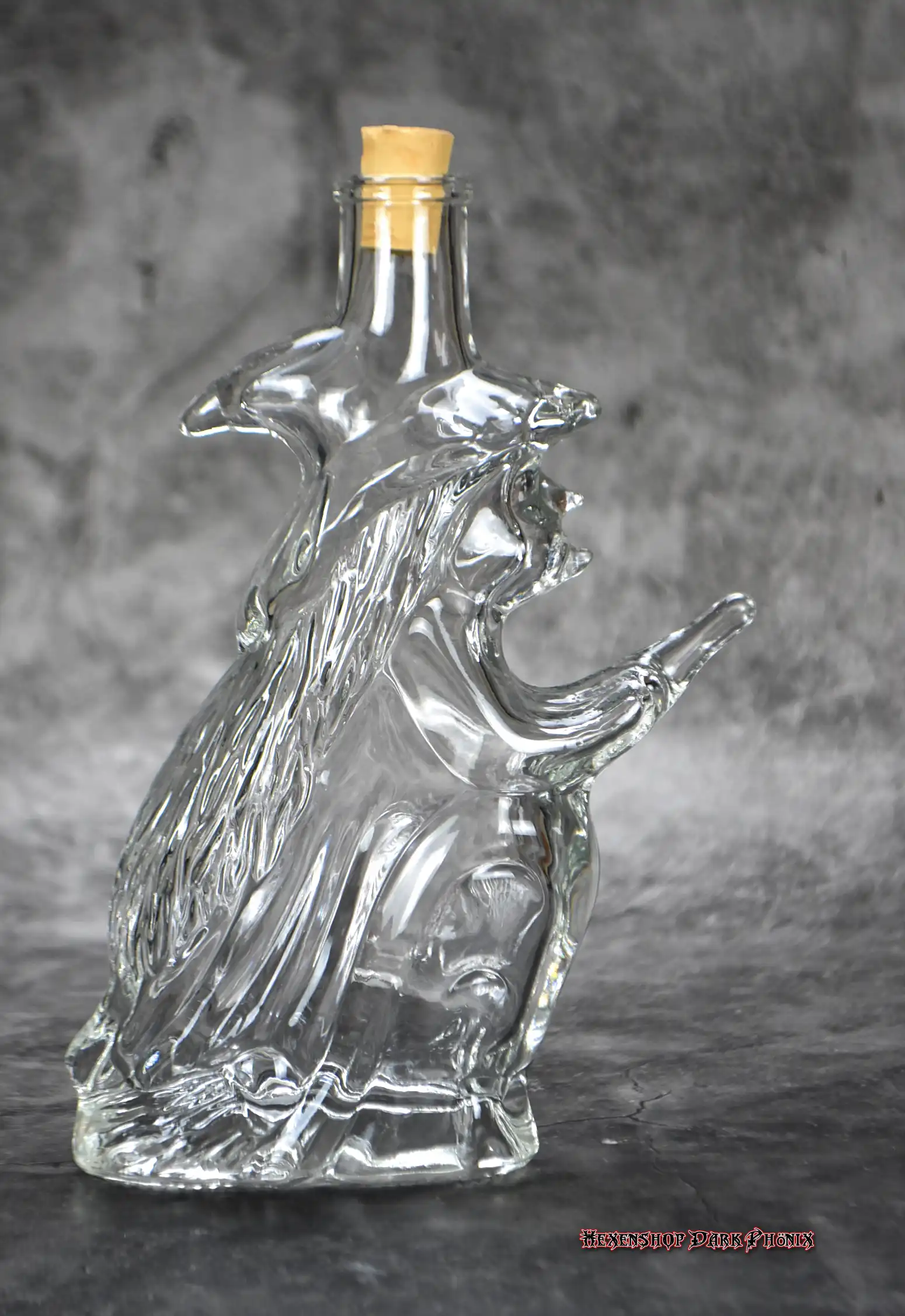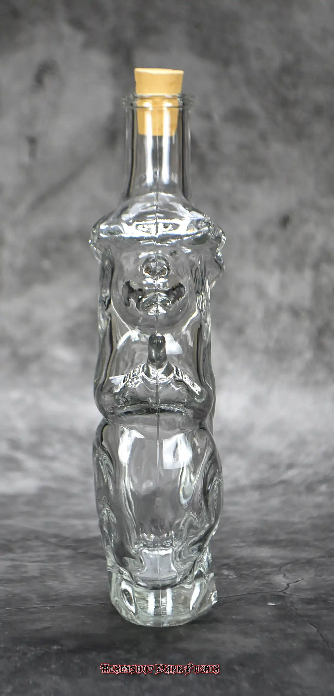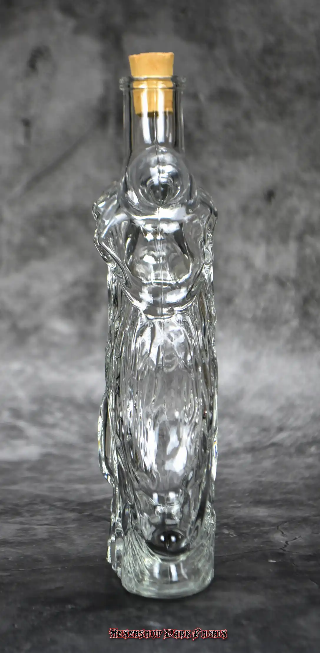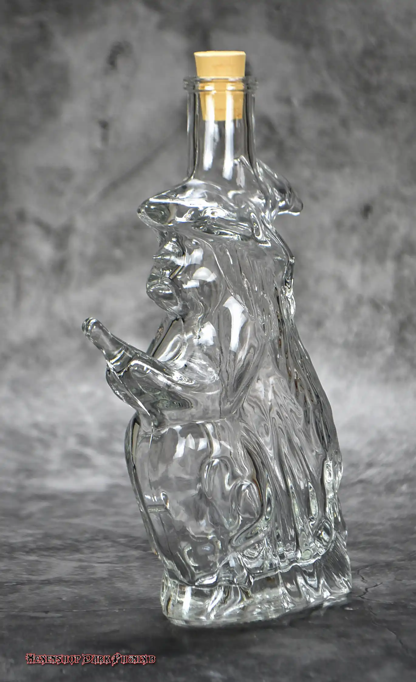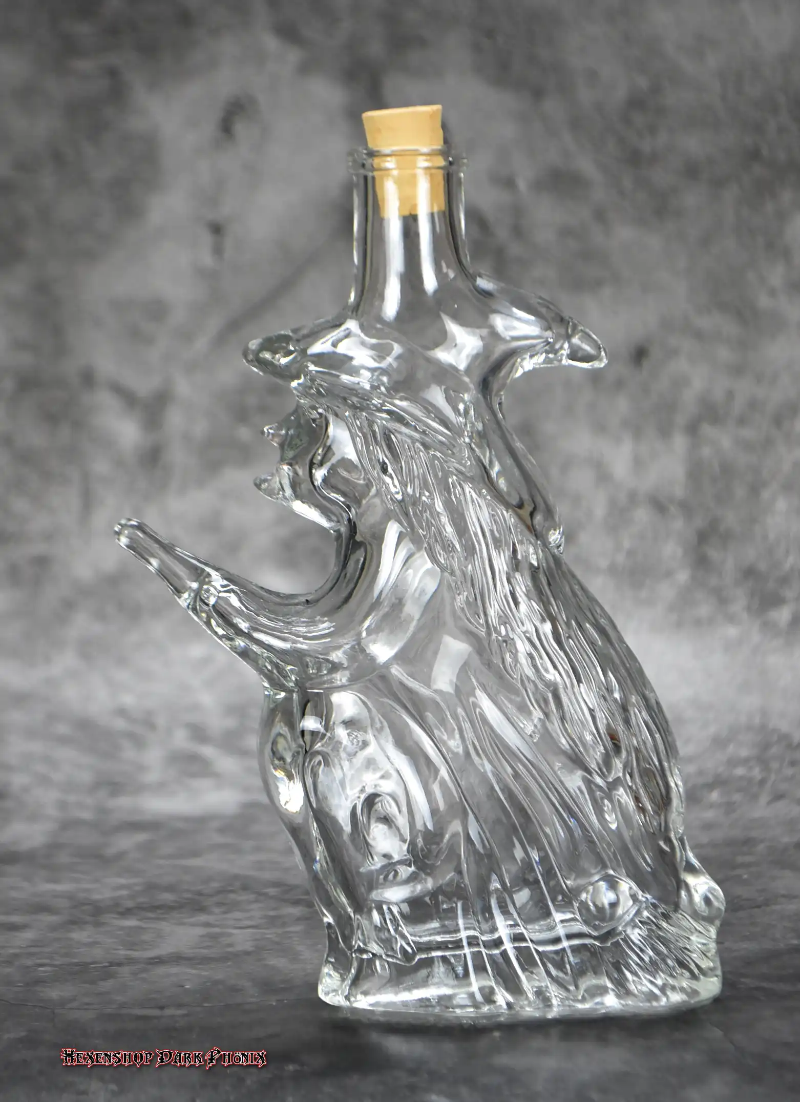 Eine extravagante fliegende Hexe auf Besen Elixierflasche aus Glas mit Korken zum Verschließen. Sie wird zum Befüllen mit Elixieren, Ölen, selbstgemachte Getränke, Hexengebräu, Liköre, Schnaps oder als Zauberfläschchen (Spell Jars, Bellarmine) benutzt. Für alle Arten von Zaubern geeignet. Es lagert auf einem Kraftplatz. Auch als Geschenk geeignet. Lasst Euch von der Vielfalt inspirieren, Eure eigenen starken Zauber zu kreieren. Hexenshop Dark Phönix: dark, darker, am darkesten )O(
