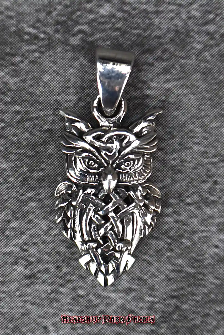 Ein filigraner 925er Sterlingsilber Eulen Anhänger, mit keltischem Knoten und Triquetta. Die Rückseite ist teilweise poliert und man erkennt nur die Umrisse. Wird mit einem schwarzen Band geliefert. Es lagert auf einem Kraftplatz. Auch als Geschenk geeignet. Lasst Euch von der Vielfalt inspirieren, Eure eigenen starken Zauber zu kreieren. Hexenshop Dark Phönix: dark, darker, am darkesten )O(