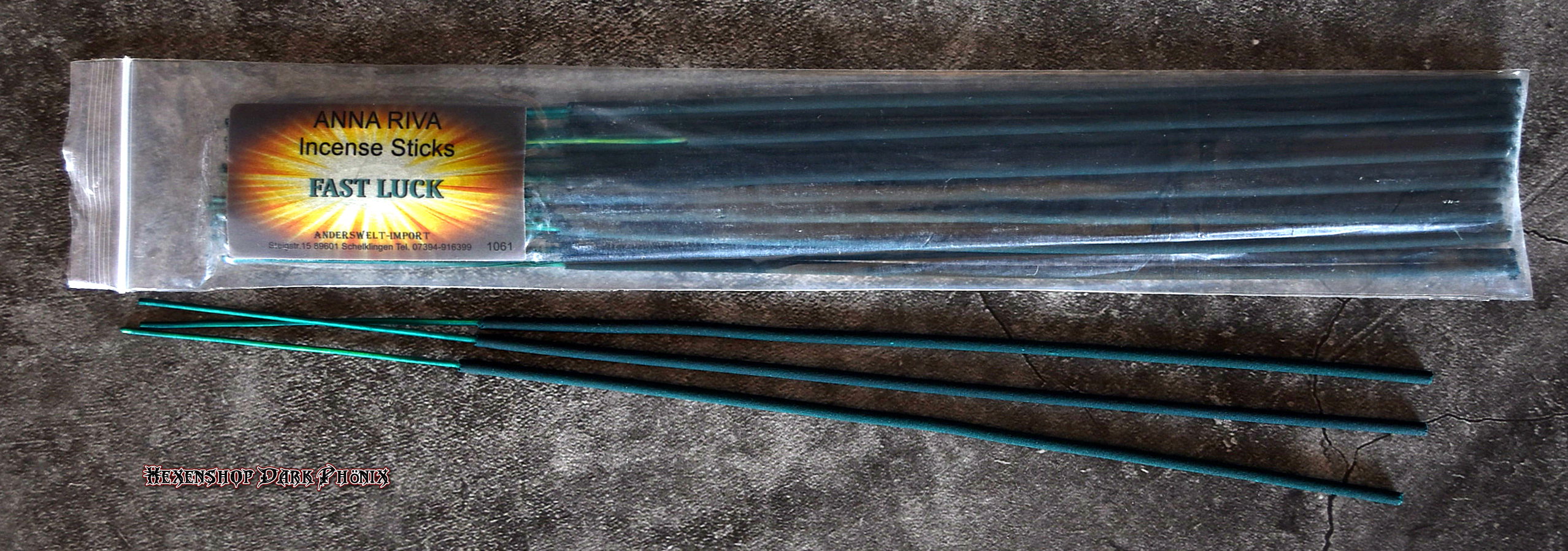 Anna Riva Räucherstäbchen Fast Luck (Schnelles Glück). Setzt man ein, um schnelle Hilfe bei allen Unternehmungen zu bekommen, die schnelles Glück erfordern. Sollte dich das Glück verlassen haben, unterstützt dich diese Räucherstäbchen wieder glückliche Fügungen in dein Leben zu holen. Diese magischen Räucherstäbchen wurden energetisch aufgeladen und unter Berücksichtigung des Planetenstands, der Pflanzenenergie hergestellt. Sie lagern auf einem Kraftplatz. Lasst Euch von der Vielfalt inspirieren, Eure eigenen starken Zauber zu kreieren.