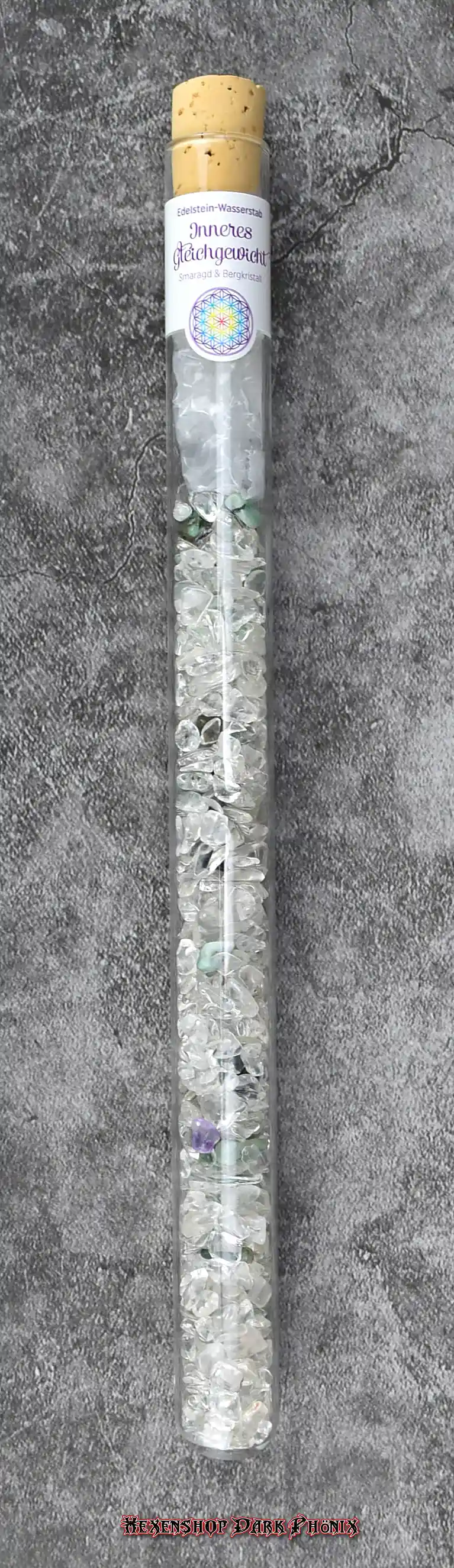 Dieser Edelstein Wasserstab Inneres Gleichgewicht beinhaltet die Halbedelsteine Smaragd und Bergkristall. Das Reagenzglas ist ca. 25 cm lang, mit Korken. Die Reagenzglasmethode wird für die Energetisierung Eures Trinkwassers benutzt. Durch die Wassersteine kann sich das Wasser energetisch aufladen. Auch soll das Trinkwasser besser schmecken. Sie lagern auf einem Kraftplatz. Auch als Geschenk geeignet. Lasst Euch von der Vielfalt inspirieren, Eure eigenen starken Zauber zu kreieren. Hexenshop Dark Phönix: dark, darker, am darkesten )O(