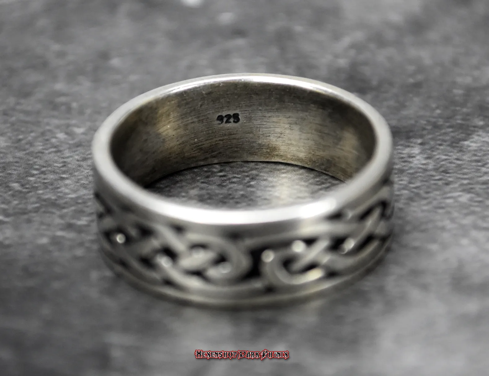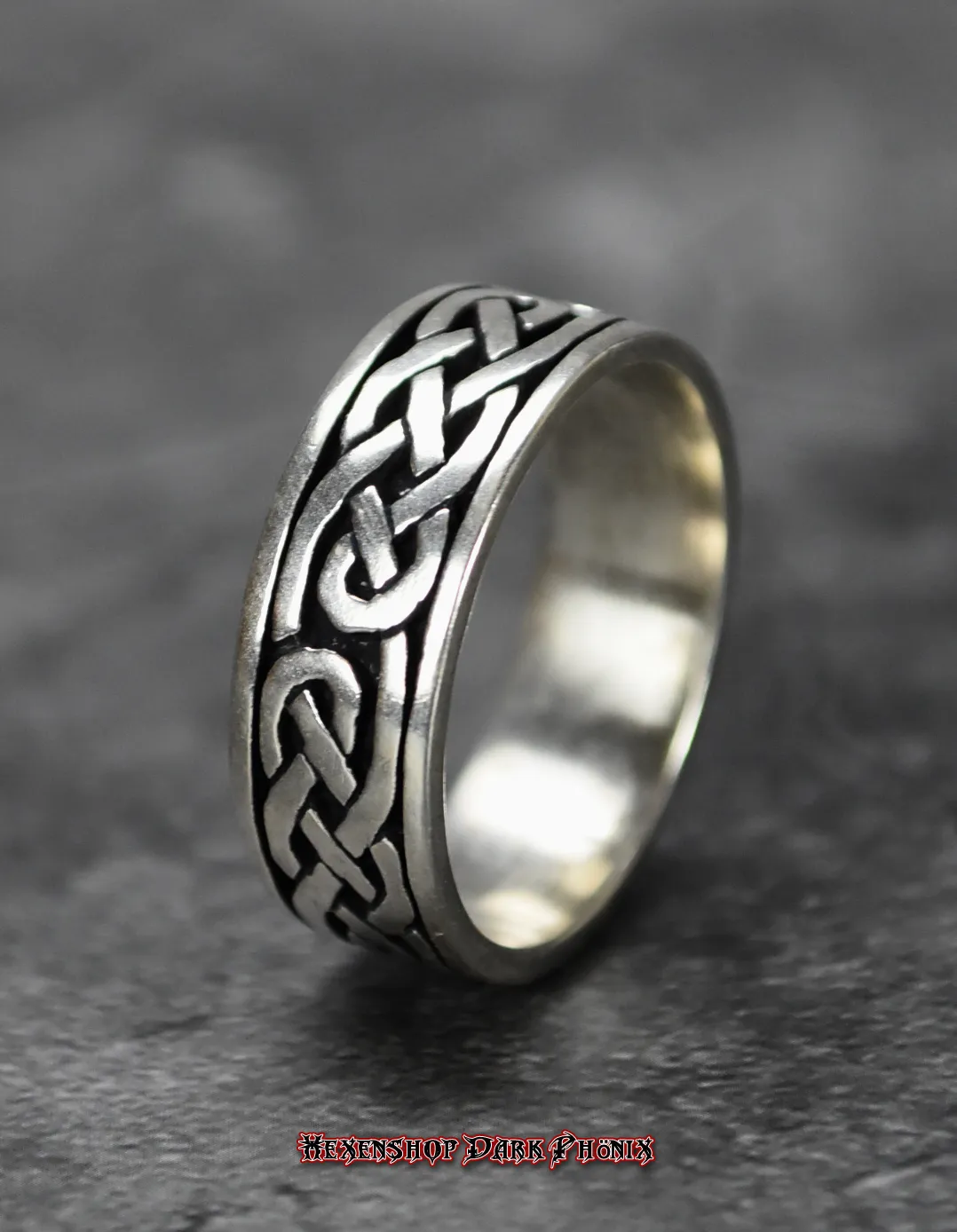 Dieser edle Bandsilberring aus hochwertigem 925er-Silber ist ein zeitloses Zeugnis alter Handwerkskunst und spiritueller Tiefe. Das umlaufende Design des keltischen Knotens macht diesen Ring zu einem kraftvollen Begleiter, der die Harmonie von Ästhetik und Symbolik perfekt in sich vereint. Um seine spirituelle Wirkung zu unterstützen, wurde dieser Ring an einem Kraftplatz gelagert. Durch die flache Form des Bandrings schmiegt er sich angenehm an den Finger und ist somit der ideale Begleiter für tägliche Rituale oder als bedeutungsvolles Geschenk für einen geliebten Menschen. Lass dich von der Vielfalt inspirieren und webe Deine eigene Magie in den Fluss der Zeit. Hexenshop Dark Phönix: dark, darker, am darkesten )O(