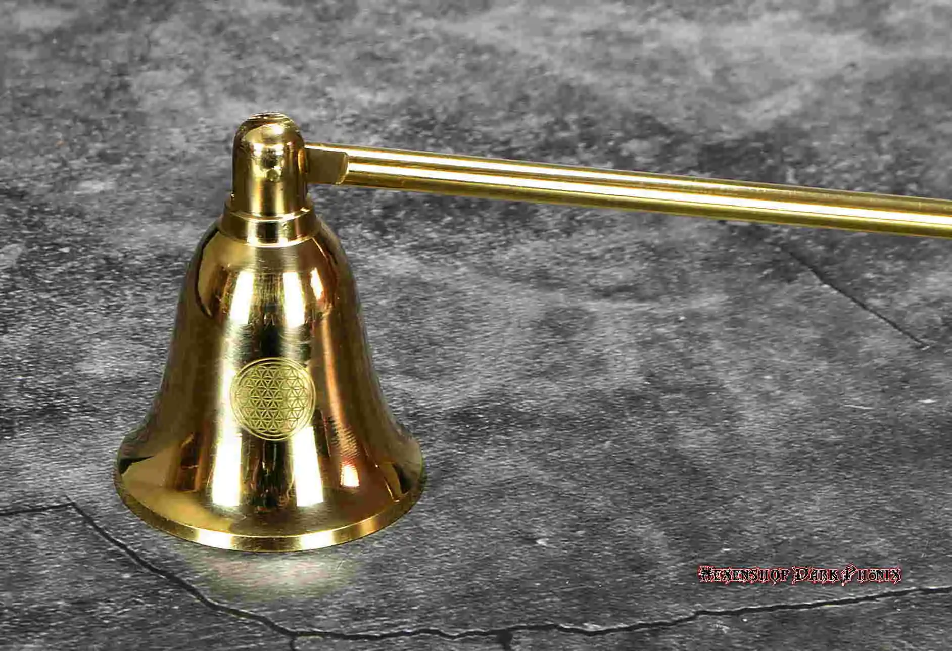 Dieser goldfarbener Kerzenlöscher Blume des Lebens, mit beweglichem Kopf und extra langem Griff ist ideal, um Glaskerzen auszumachen. Auch für normale Kerzen geeignet. Mit dem Kerzenlöscher kommt man auch an schwer zugänglichen Stellen, um Kerzen zu löschen. Auf dem Löschkopf ist einmal die Blume des Lebens abgebildet. Um einen Zauber nicht negativ zu beeinflussen, sollte man die Kerze nicht ausblasen. Sondern die Kerze mit einem Kerzenlöscher löschen, dabei zum Beispiel sagen oder denken: "Dieses Feuer erlischt im Hier und Jetzt, brenne weiter in der Anderswelt heller und stärker, bis ich dich wieder anzünde." Kann man auch je nach magischer Richtung ausschmücken. Es lagert auf einem Kraftplatz. Auch als Geschenk geeignet. Lasst Euch von der Vielfalt inspirieren, Eure eigenen starken Zauber zu kreieren. Hexenshop Dark Phönix: dark, darker, am darkesten )O(