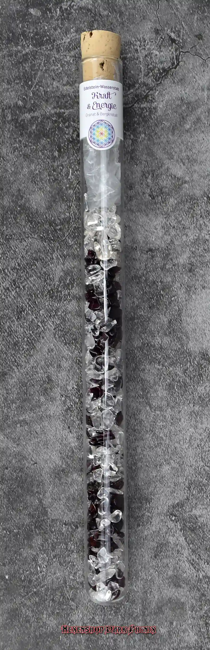 Dieser Edelstein Wasserstab Kraft & Energie beinhaltet die Halbedelsteine Granat und Bergkristall. Das Reagenzglas ist ca. 25 cm lang, mit Korken. Die Reagenzglasmethode wird für die Energetisierung Eures Trinkwassers benutzt. Durch die Wassersteine kann sich das Wasser energetisch aufladen. Auch soll das Trinkwasser besser schmecken. Sie lagern auf einem Kraftplatz. Auch als Geschenk geeignet. Lasst Euch von der Vielfalt inspirieren, Eure eigenen starken Zauber zu kreieren. Hexenshop Dark Phönix: dark, darker, am darkesten )O(