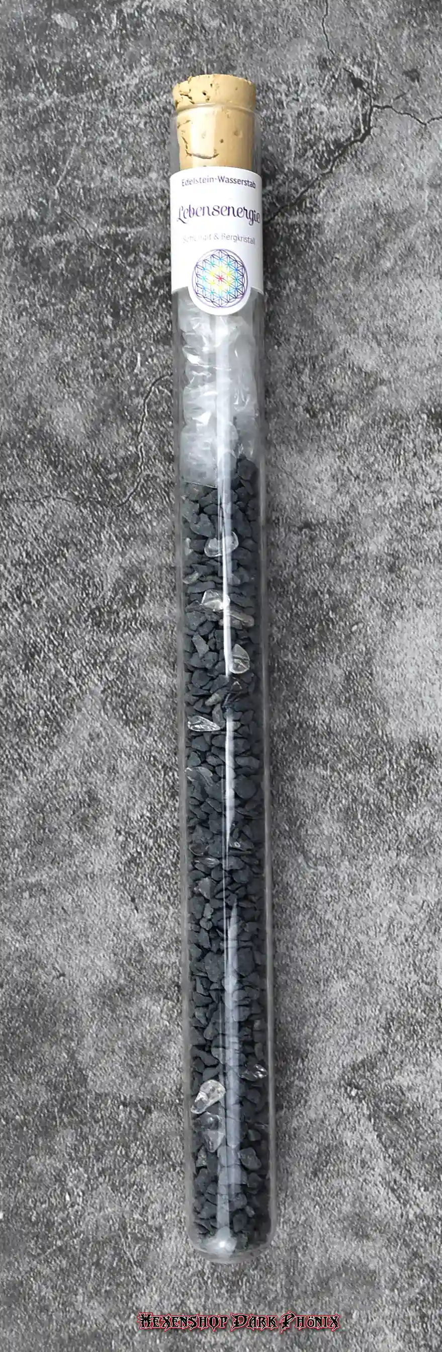 Dieser Edelstein Wasserstab Lebensenergie beinhaltet die Halbedelsteine Schungit und Bergkristall. Das Reagenzglas ist ca. 25 cm lang, mit Korken. Die Reagenzglasmethode wird für die Energetisierung Eures Trinkwassers benutzt. Durch die Wassersteine kann sich das Wasser energetisch aufladen. Auch soll das Trinkwasser besser schmecken. Sie lagern auf einem Kraftplatz. Auch als Geschenk geeignet. Lasst Euch von der Vielfalt inspirieren, Eure eigenen starken Zauber zu kreieren. Hexenshop Dark Phönix: dark, darker, am darkesten )O(