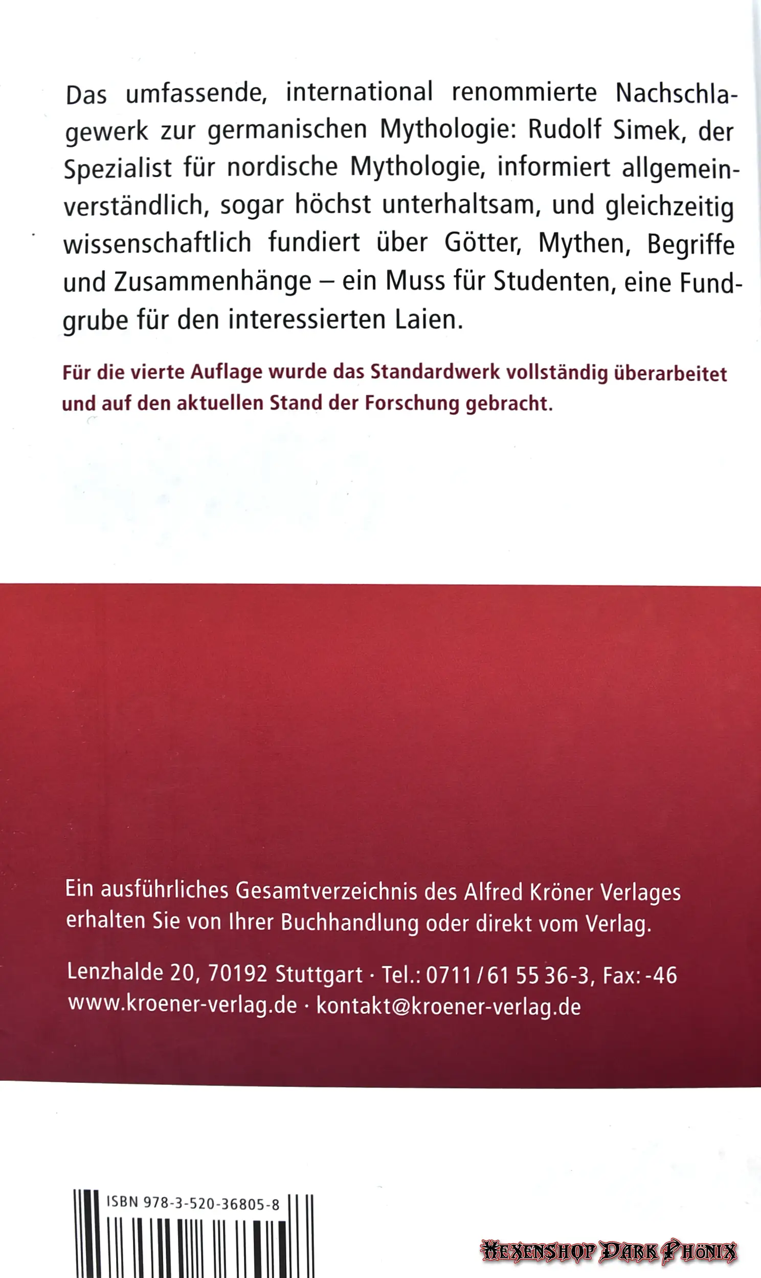 Rückentext: Das umfassende, international renommierte Nachschlagewerk zur germanischen Mythologie: Rudolf Simek, der Spezialist für nordische Mythologie, informiert allgemeinverständlich, sogar höchst unterhaltsam, und gleichzeitig wissenschaftlich fundiert über Götter, Mythen, Begriffe und Zusammenhänge - ein Muss für Studenten, eine Fundgrube für den interessierten Laien.