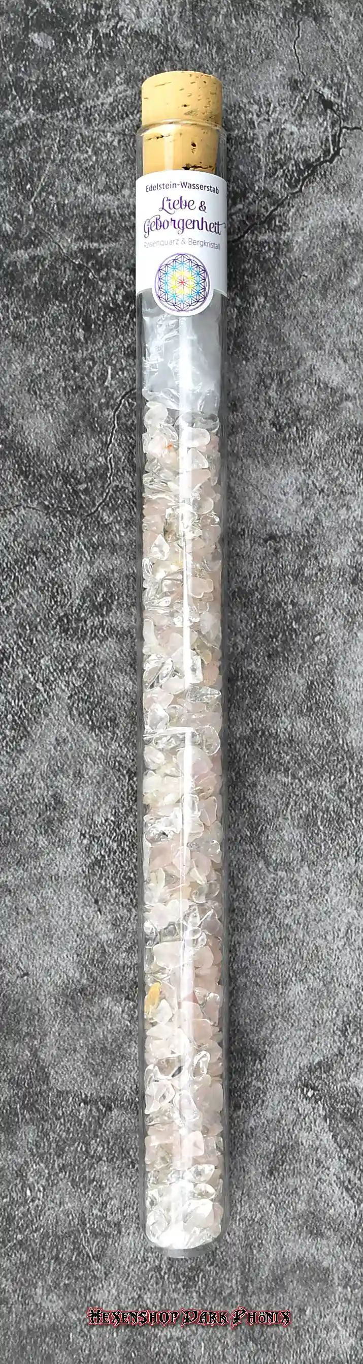 Dieser Edelstein Wasserstab Liebe & Geborgenheit beinhaltet die Halbedelsteine, Rosenquarz und Bergkristall. Das Reagenzglas ist ca. 25 cm lang, mit Korken. Die Reagenzglasmethode wird für die Energetisierung Eures Trinkwassers benutzt. Durch die Wassersteine kann sich das Wasser energetisch aufladen. Auch soll das Trinkwasser besser schmecken. Sie lagern auf einem Kraftplatz. Auch als Geschenk geeignet. Lasst Euch von der Vielfalt inspirieren, Eure eigenen starken Zauber zu kreieren. Hexenshop Dark Phönix: dark, darker, am darkesten )O(