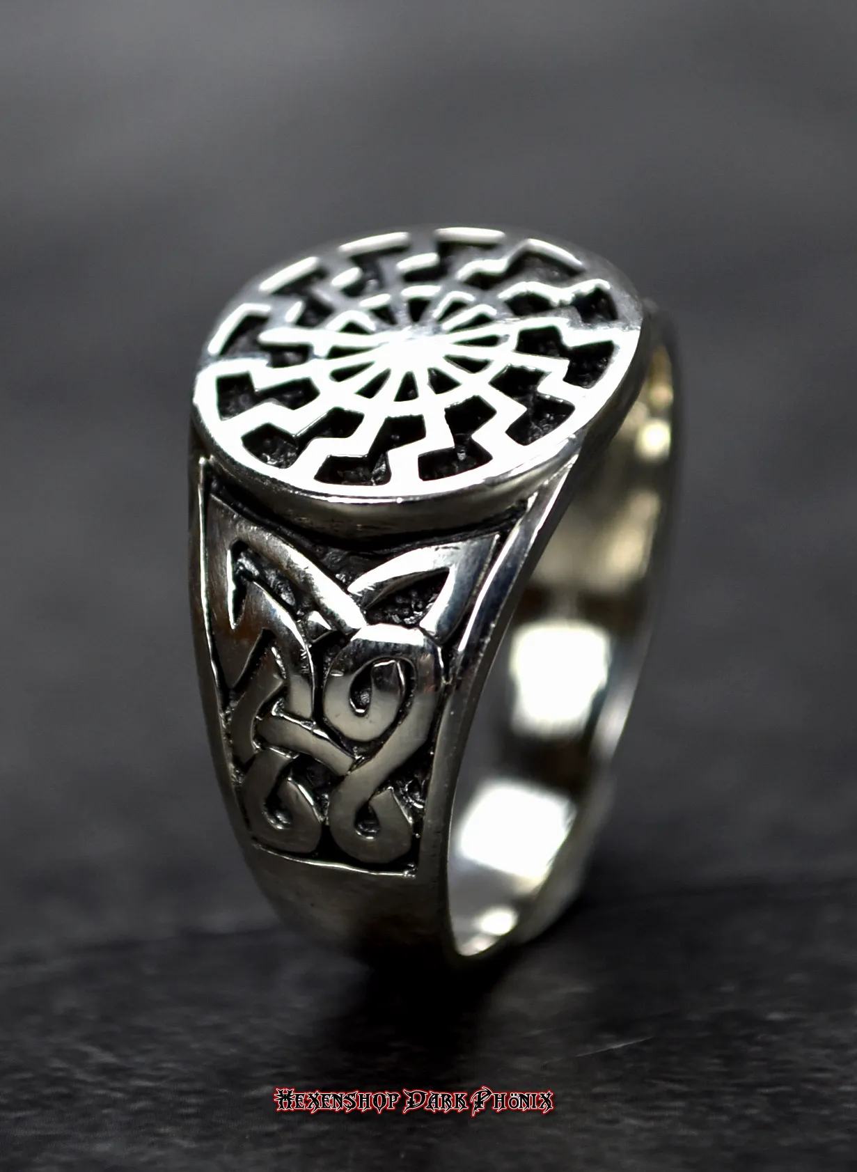 Dieser kunstvoll gefertigte Ring aus 925er Sterlingsilber ist mehr als nur ein Schmuckstück; er ist ein kraftvolles Symbol der Verbindung zwischen Erde und Kosmos. Flankiert wird das zentrale Sonnenrad von kunstvollen keltischen Knoten. Diese endlosen Flechtwerke ohne Anfang und Ende symbolisieren die Ewigkeit, den ewigen Kreislauf von Leben, Tod und Wiedergeburt sowie die untrennbare Verbindung von Geist und Materie. Sie binden die fließende Energie des Sonnenrades direkt an seinen Träger. Jeder Ring wurde auf einem energetischen Kraftplatz gelagert, um seine spirituelle Wirkung voll zu entfalten. Ob als persönlicher Wegbegleiter oder als bedeutungsvolles Geschenk für einen geliebten Menschen: Dieses Schmuckstück lädt dich ein, deine eigene Magie zu weben. Lass dich von der Vielfalt inspirieren und kreiere deinen eigenen, starken Zauber. Hexenshop Dark Phönix: dark, darker, am darkesten )O(