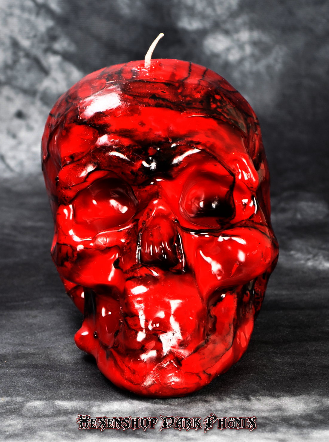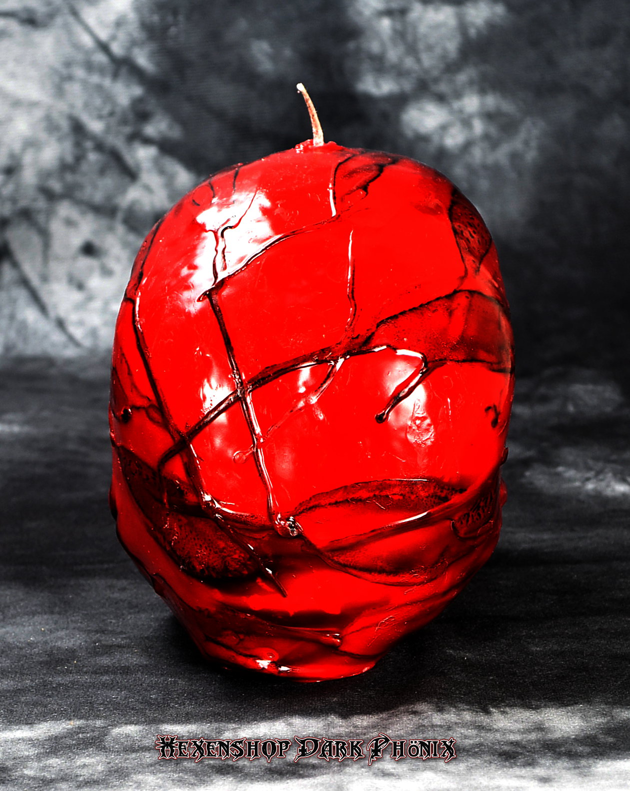 Diese vielseitige große Totenkopf-Ritualkerze in Rot-Schwarz wird für Voodoo, Hoodoo oder sehr starke schwarzmagische Rituale und schwarzmagische Liebeszauber, sowie Feuerrituale und Marsrituale verwendet. Sie füllt einem mit energetischer Energie auf. Diese Schädelkerze kann man zur Verstärkung mit einem Öl einreiben. Jede Kerze ist ein Unikat und von Hand gegossen und gebrannt. Eine exklusive Altardekoration für dunkle Hexen, Satanisten, Schwarzmagier und Gothic. Diese Kerze lagert auf einem Kraftplatz. Auch als Geschenk geeignet. Lasst Euch von der Vielfalt inspirieren, Eure eigenen starken Zauber zu kreieren. Hexenshop Dark Phönix: dark, darker, am darkesten )O(