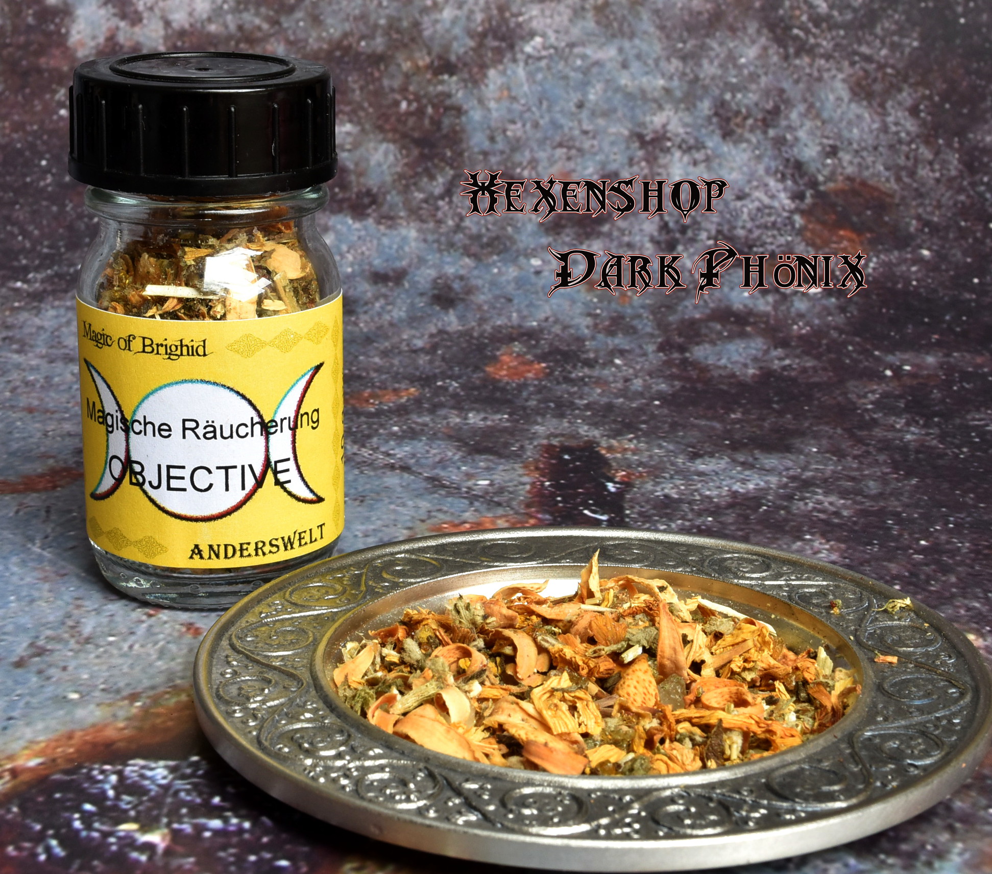 Magic of Brighid Räuchermischung Objective (Ziel) setzt man ein, um einen gefassten Plan oder Idee zielstrebig in die Tat umzusetzen. Dieses Räucherwerk wurde nach alter Überlieferung zusammen gemischt. Diese magische Räuchermischung wurde energetisch aufgeladen und unter Berücksichtigung des Planetenstands, der Pflanzenenergie hergestellt. Sie lagert auf einem Kraftplatz. Zu jedem Räucherwerk gibt es auch die passende Kerze und das entsprechende ätherische Öl. Lasst Euch von der Vielfalt inspirieren, Eure eigenen starken Zauber zu kreieren.